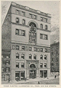 This is an original 1893 print of the Edison Electric Illuminating Company, Pearl and Elm Streets, New York City.