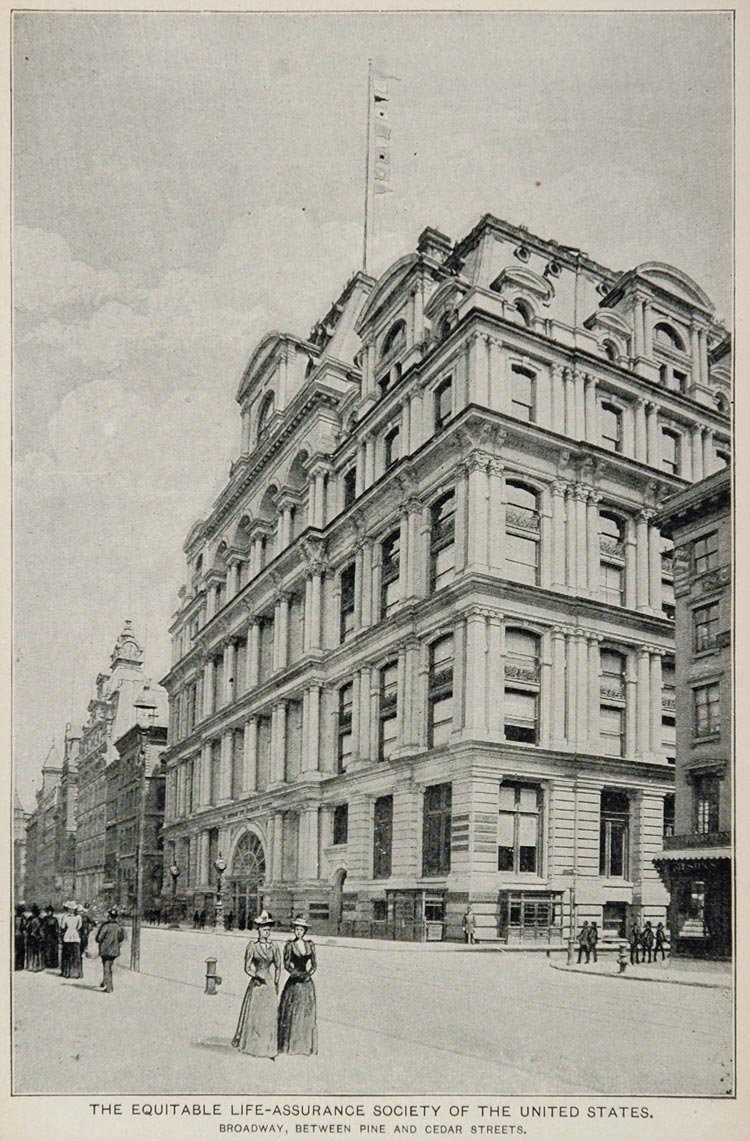 This is an original 1893 print of the Equitable Life Assurance Society of the United States Building, Broadway, between Pine and Cedar Streets, New York City.