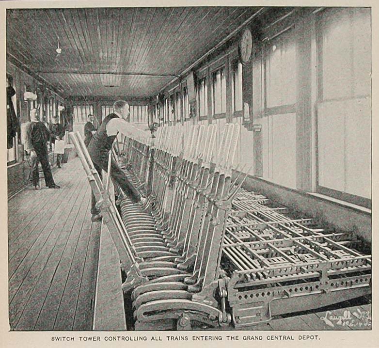 This is an original 1893 halftone print of the Switch Tower controlling the trains entering the Grand Central Depot in New York City.