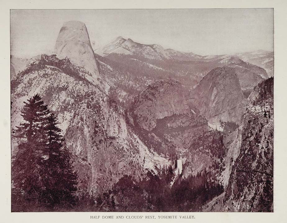 This is an original 1893 duotone print with a lovely view of Half Dome and Cloud's Rest in the Yosemite Valley, California.