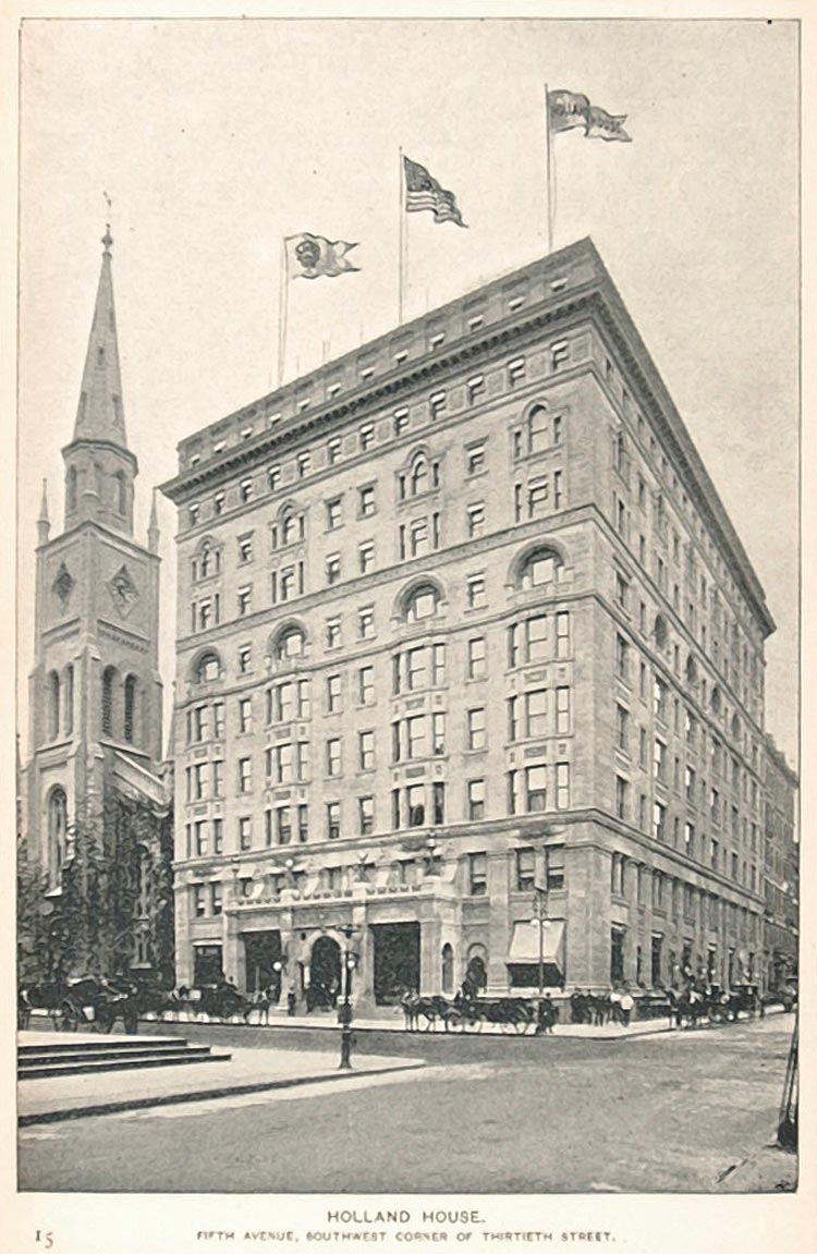 This is an original 1893 halftone print of the Holland House, Fifth Avenue, southwest corner of Thirtieth Street, New York City.
