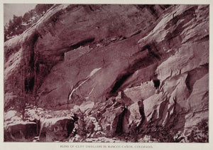 This is an original 1893 halftone print of the ruins of cliff dwellings in Mancos Canyon, Colorado. (Please note that there is printing on the reverse.)
