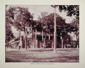This is an original 1893 duotone print of the Mormon Tithing House in Salt Lake City, Utah.