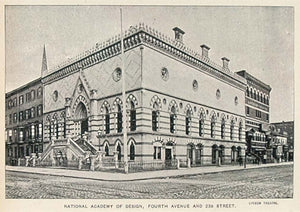 This is an original 1893 halftone print of the National Academy of Design, Fourth Avenue and 23rd Street, New York City.