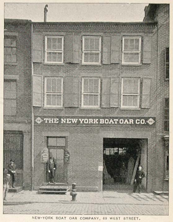 This is an original 1893 halftone print of The New York Boat Oar Co. Building, 69 West Street, New York City.