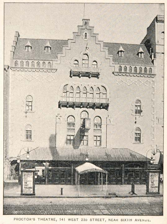 This is an original 1893 halftone print of Proctor's Theatre, 141 West 23rd Street, near Sixth Avenue, New York City.