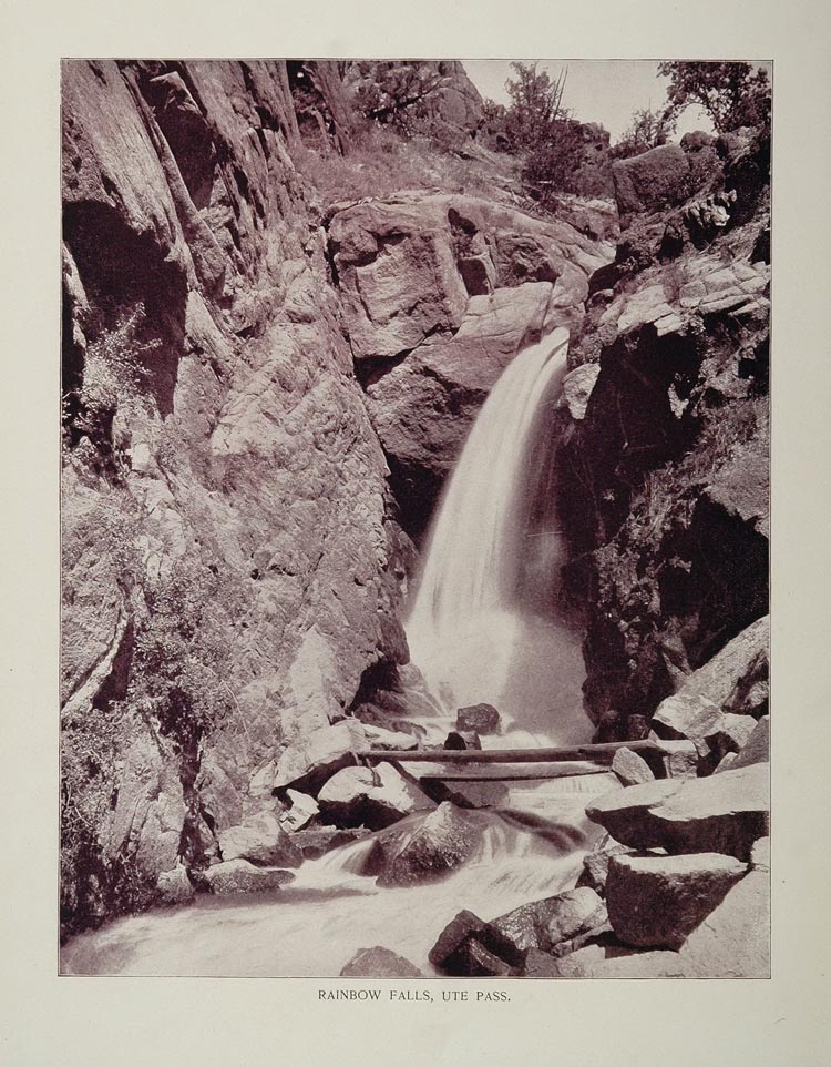 This is an original 1893 duotone print of Rainbow Falls, Ute Pass, Colorado.