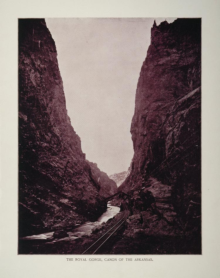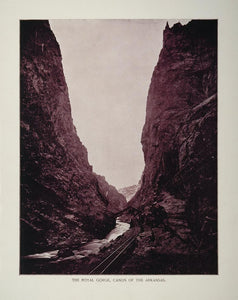 This is a very nice, original 1893 duotone print of Royal Gorge, also called the Grand Canyon of the Arkansas, in Colorado.