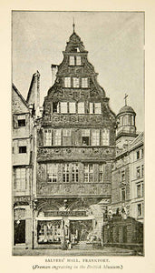 This is an original 1893 monochrome halftone print of the Salters' Hall in Frankfort, Germany.