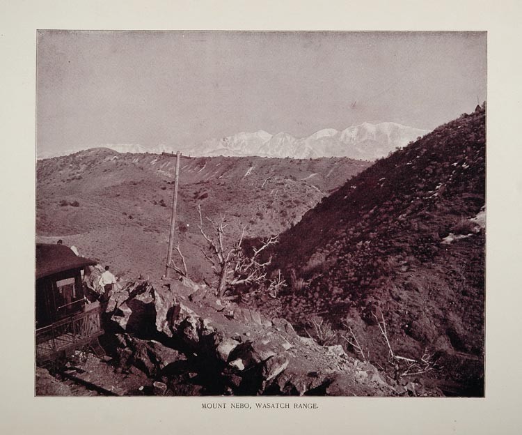 This is an original 1893 duotone print of snow-capped Mount Nebo, the highest mountain in the Wasatch Range.