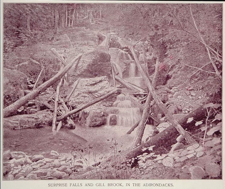 This is an original 1893 halftone print of Surprise Falls and Gill Brook in the Adirondacks. (Please note that there is printing on the reverse.)