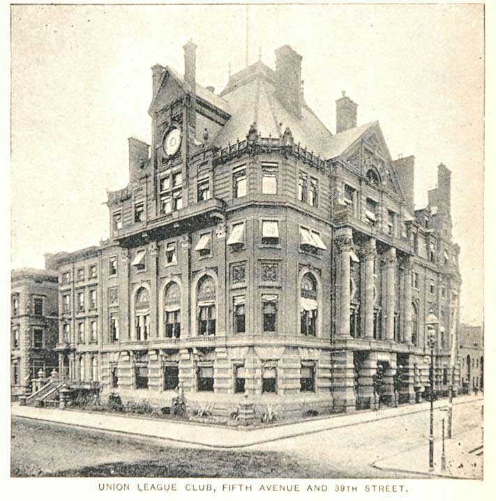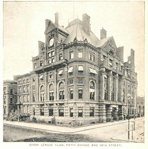 This is an original 1893 halftone print of the Union League Club, Fifth Avenue and 39th Street, New York City.