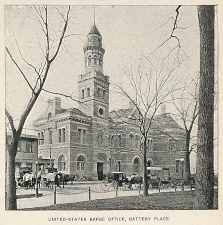 This is an original 1893 halftone print of the United States Barge Office, Battery Place, New York City.