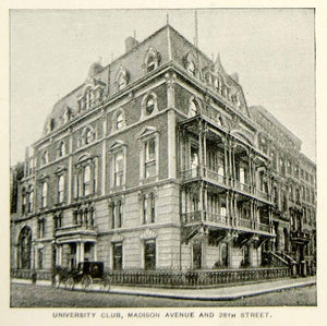 This is an original 1893 black and white halftone print of the University Club, a private social club, at Madison Avenue and 26th Street in New York City.