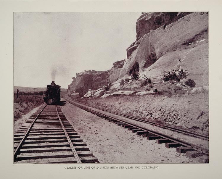 This is an unusual, original 1893 duotone print which shows a line marking the border between Utah and Colorado.