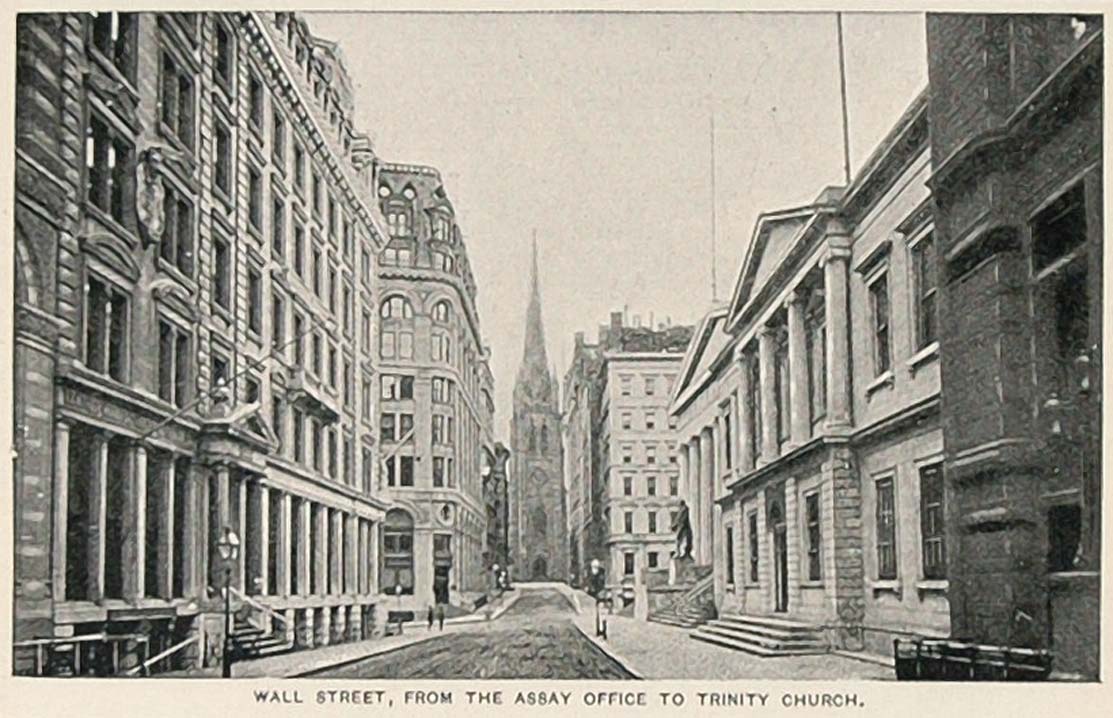 1893 Print Wall Street Assay Office Trinity Church NYC ORIGINAL HISTORIC NY2
