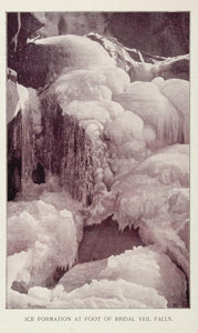 This is an original 1893 duotone print of the famous Bridal Veil Falls (Bridalveil Fall) in winter, Yosemite National Park, California.