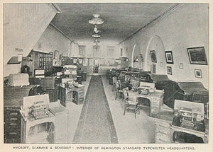 This is an original 1893 halftone print of the interior of the Wyckoff, Seamans & Benedict Co. Building-- Remington Standard Typewriter Headquarters, New York City.