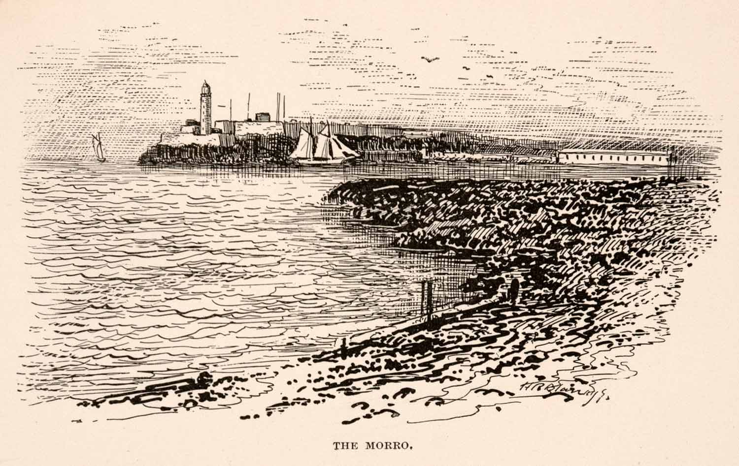 1893 Wood Engraving Morro Castle Havana Cuba Castillo Lighthouse Ship XGDA9