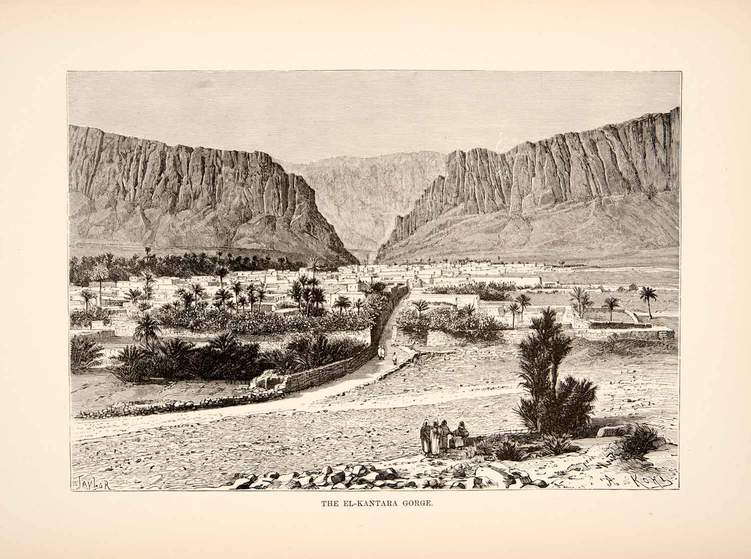 1893 Wood Engraving (Photoxylograph) El-Kantara Gorge Algeria Cityscape XGIC8