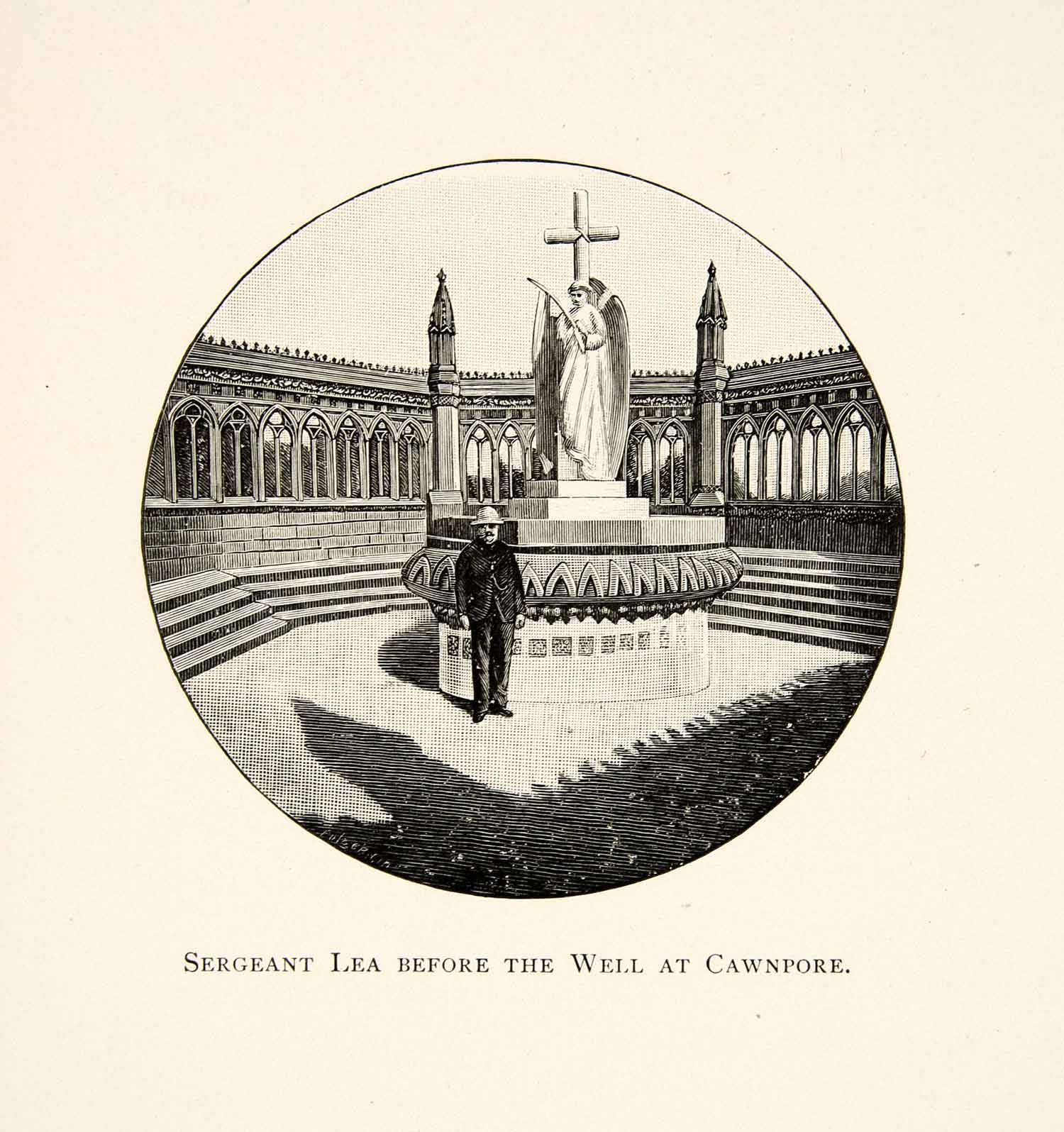 1893 Wood Engraving (Photoxylograph) Sergeant Lea Well Cawnpore Kanpur XGWC8