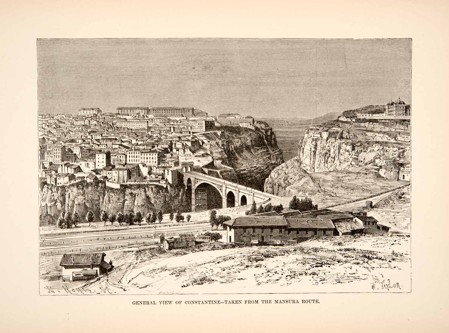1893 Wood Engraving (Photoxylograph) View Constantine Mansura Route XGIC8