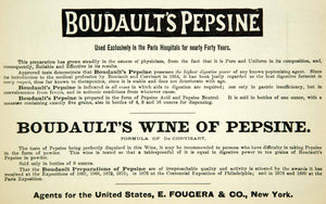 Keywords specific to this image: Antique Advertising, Treatment, Remedy, Ailment, Sickness, Disease, Symptom, New York, Druggist, Chemist, Clinic, Physician, Doctor, Elixir, Beverage, Drink, De Corvisart Formula
