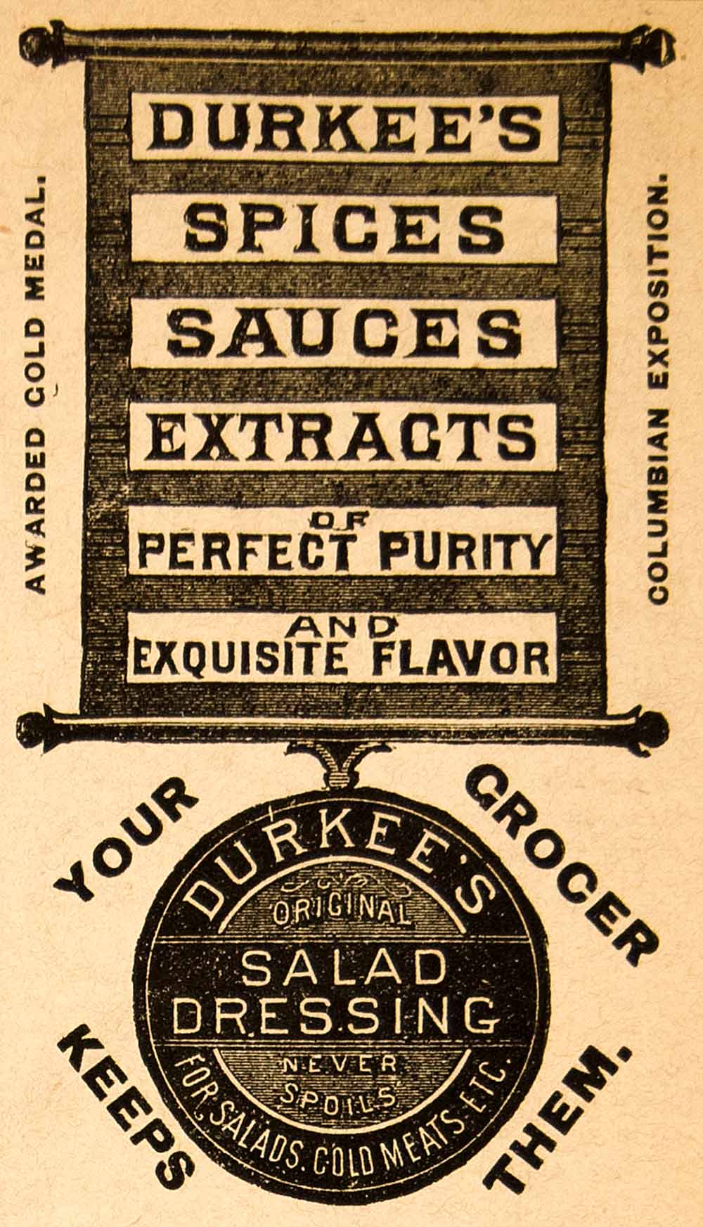 This is an original 1894 black and white print ad for Durkee's Salad Dressing.