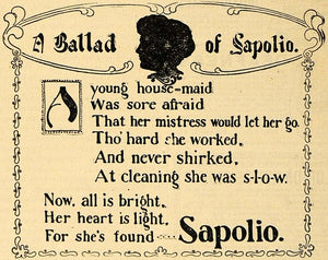1894 Ad Sapolio Soap Washing Ballad Poem RARE - ORIGINAL ADVERTISING MAY1