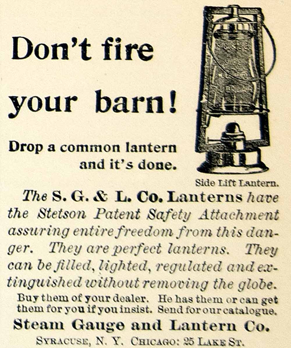 Keywords specific to this image: Antique Advertising, Farm, Light, Lighting, Oil, Regulator, Glass, Tubular Globe, Company, SG & L, Illumination, Street, Illinois, Syracuse, NY, New York, Fire, Barn, Metal, Agriculture