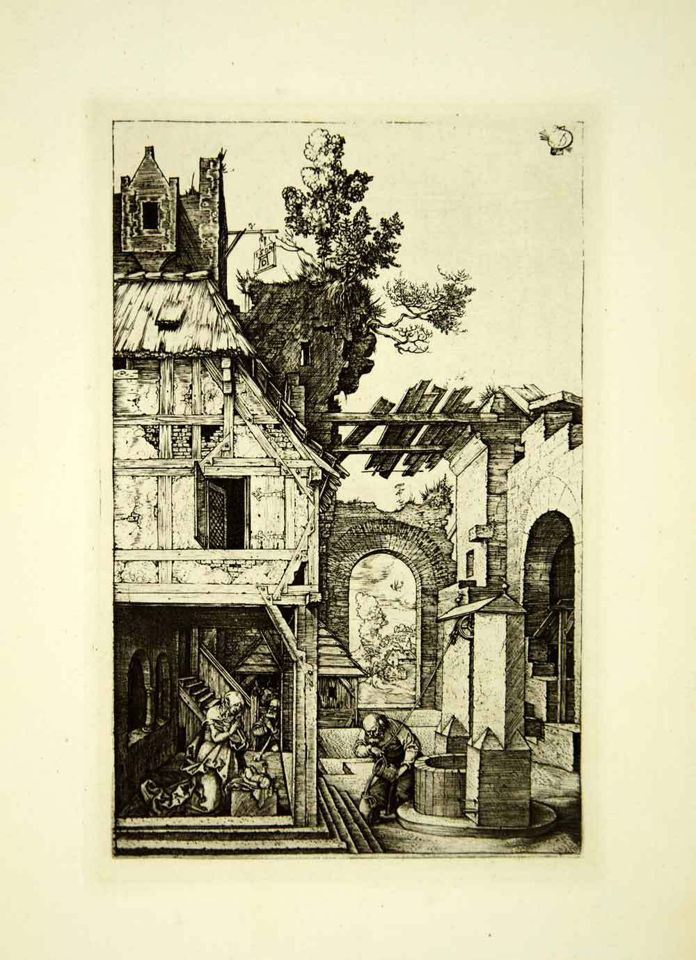 1894 Heliogravure Nativity Baby Jesus Birth Mary Joseph Village Albrecht XAMA6