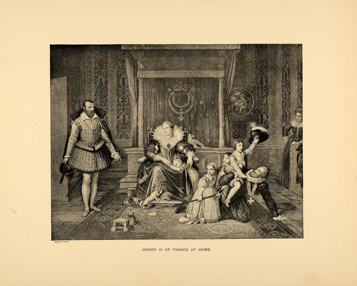 This is an original 1894 halftone print of "Henry IV of France at Home" by Jean-Auguste-Dominique Ingres.