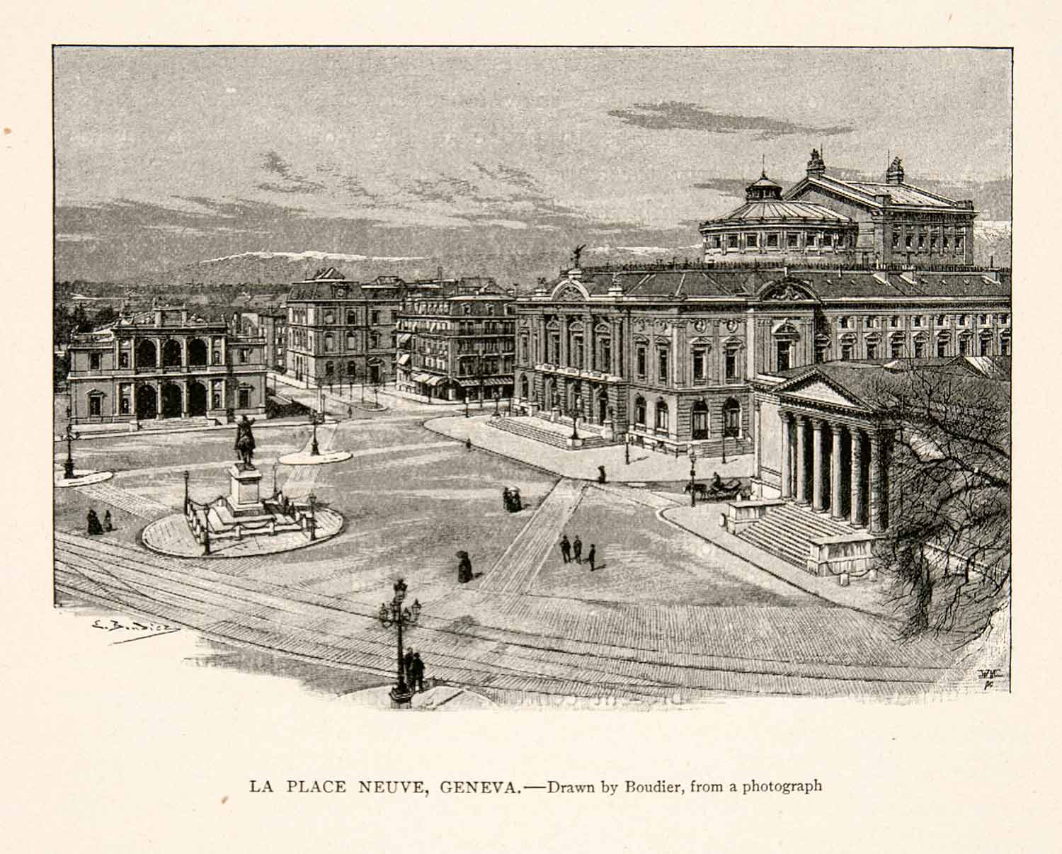 Keywords specific to this image: Conservatory, park, Swiss, Grand Theater, Musee Rath, Museum, colonnade