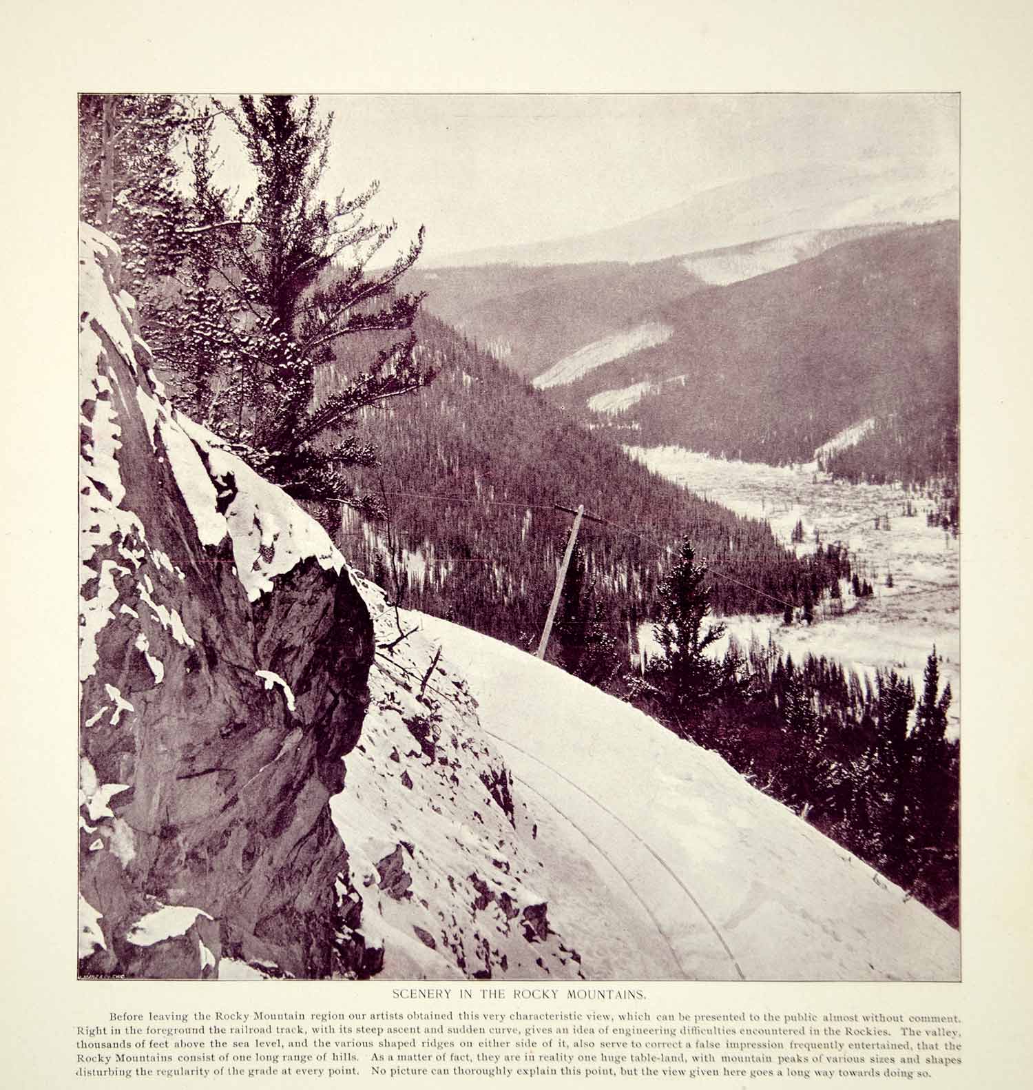 This is an original 1894 duotone halftone print of the Rocky Mountain landscape in winter.