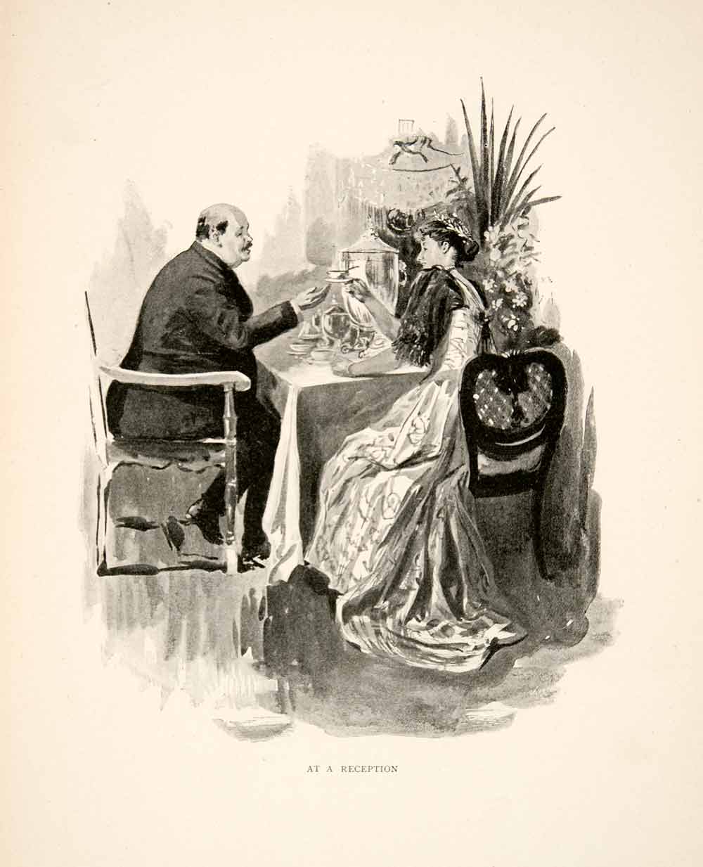 This is an original 1894 black and white halftone print of socialites at a reception in Washington D. C., the capital of the United States of America.