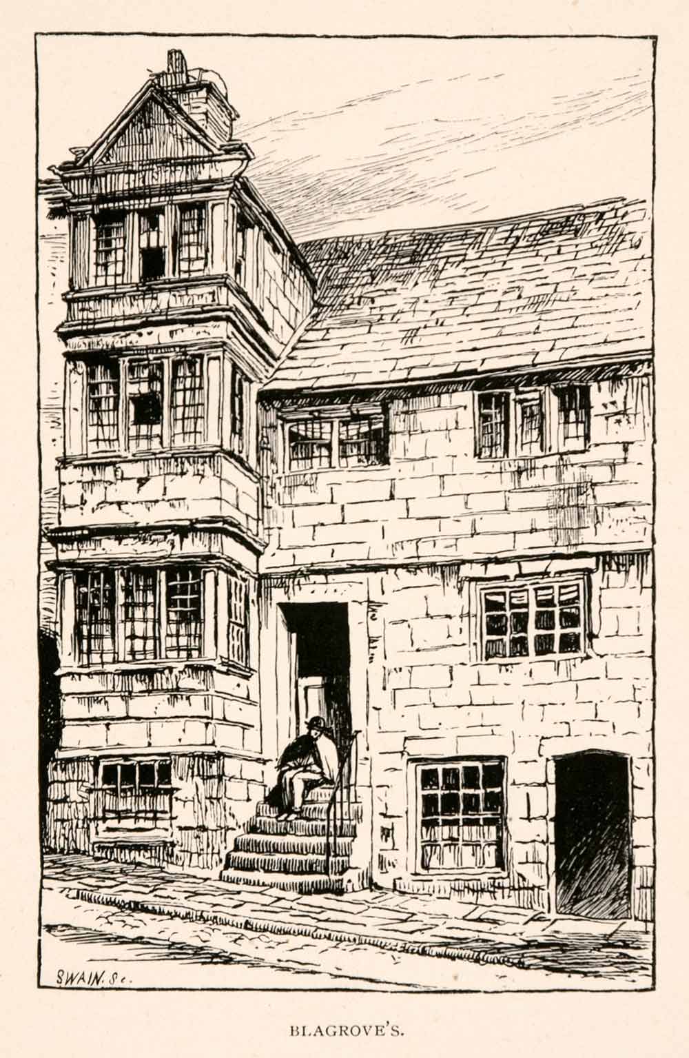 This is an original 1894 black and white in-text wood engraving of "Glagrove's" in Yorkshire, England.