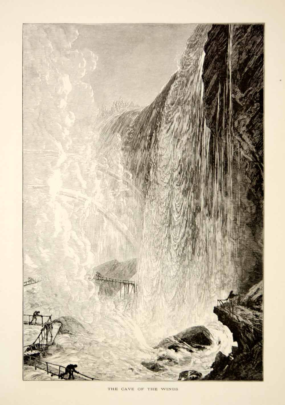 1894 Wood Engraving Cave of the Winds Bridal Veil Falls Niagara Harry Fenn YPA4