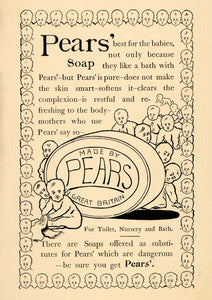 1895 Ad Andrew Pears Soap Toilet Nursery Bath Babies - ORIGINAL ADVERTISING MUN1