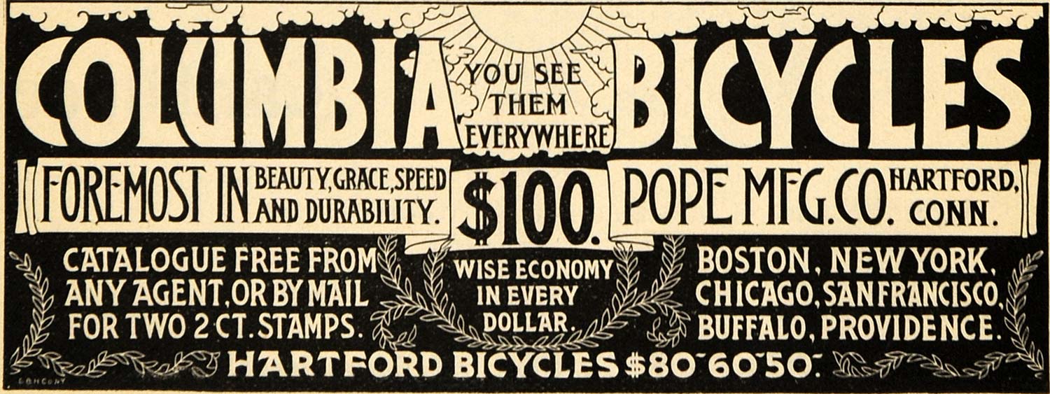 Albert Augustus Pope, of the Pope Manufacturing Company, founded the Columbia Cycle Company in Hartford, Connecticut. Pope gained a great fortune early on by purchasing Pierre LallementÕs original bicycle patent. Thereafter, Pope actively and aggressively pursued the rights to as many bicycle patents as possible, thus limiting other American bicycle manufacturerÕs abilities to make a profit. Pope also invented ball bearings in all moving parts of the bicycles, as well as hollow steel tubes used in the cycleÕs frame. He invested much of his time in promoting the bicycle industry, through clubs, races and more. In 1878, the company introduced the Columbia High Wheeler bicycle. Until 1896, The Pope Manufacturing Company was the leader amongst United States bicycle producers.