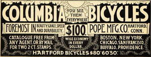1895 Ad Columbia Bicycles Durable Speed Bikes Hartford - ORIGINAL TFO1
