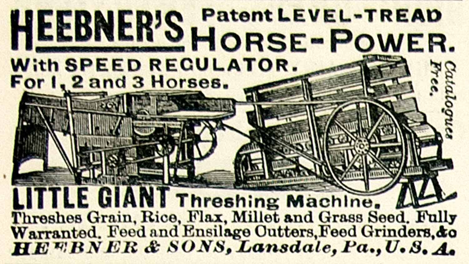 Keywords specific to this image: Antique Advertising, Farm, Agriculture, Machinery, Equipment, Tool, Device, Implement, Speed Regulator, Mechanical, Wheel, Belt, Grain, Rice, Flax, Millet, Grass Seed, Crop, Harvest, Rural, Feed, Ensilage Cutter, Grinder, Lansdale PA, Pennsylvania, Sons