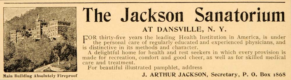 This is an original 1895 black and white print ad for The Jackson Sanatorium at Dansville, New York.