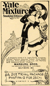This is an original 1895 black and white print ad for Yale Mixture Smoking Tobacco by the Marburg Brothers of Baltimore, Maryland. The American Tomacco Company are their successors.