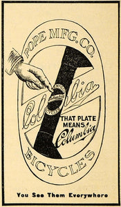 This is an original 1895 black and white print ad for the Columbia Bicycle from Pope Manufacturing Company located in Boston, Massachusetts.
