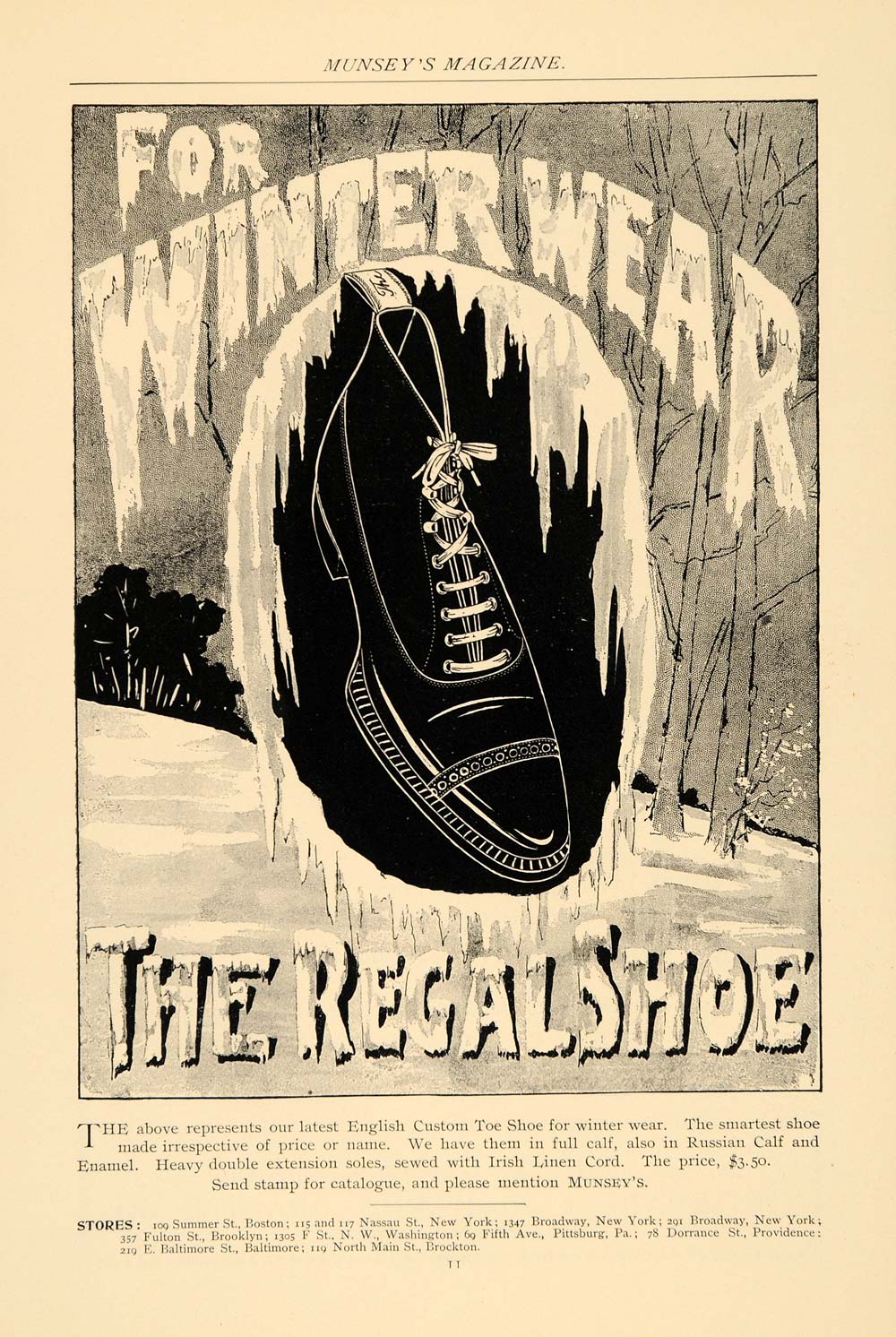 This is an original 1895 black and white print ad for winter wear, The Regal Shoe.