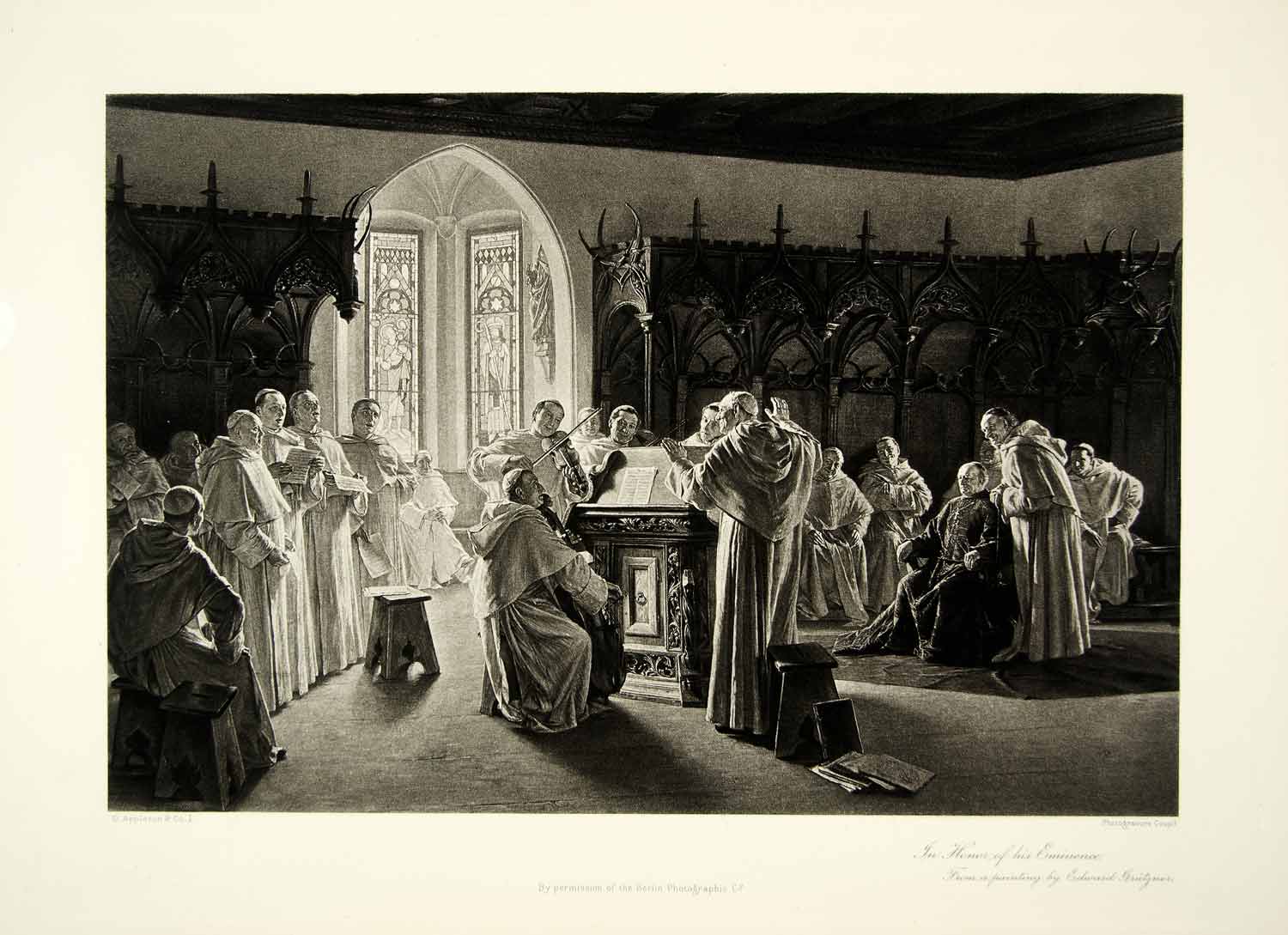 1895 Photogravure Eduard Grutzner In Honour of His Eminence Violin Music Monks