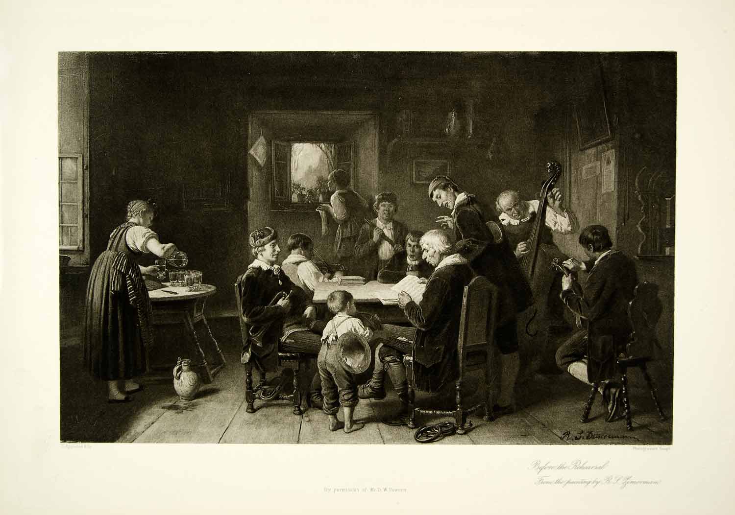 This is an original 1895 black and white photogravure of a painting by R. S. Zimmermann.