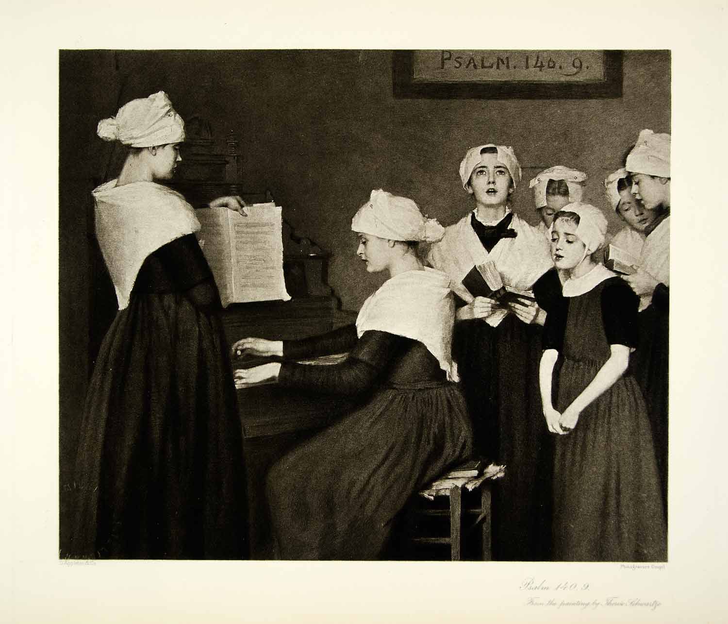 1895 Photogravure Therese Schwartze Art Psalm 140 Piano Religious Music Girls