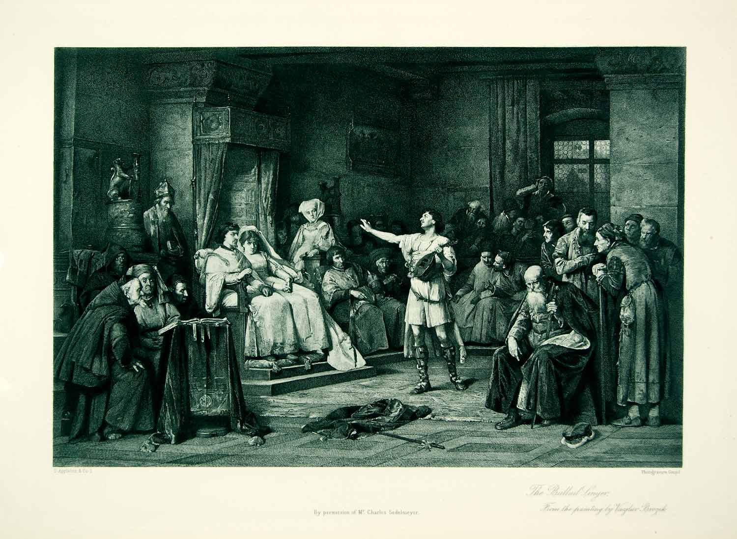 1895 Photogravure Vaclav Broz�k Art Ballad Singer Lute King Queen Music Court