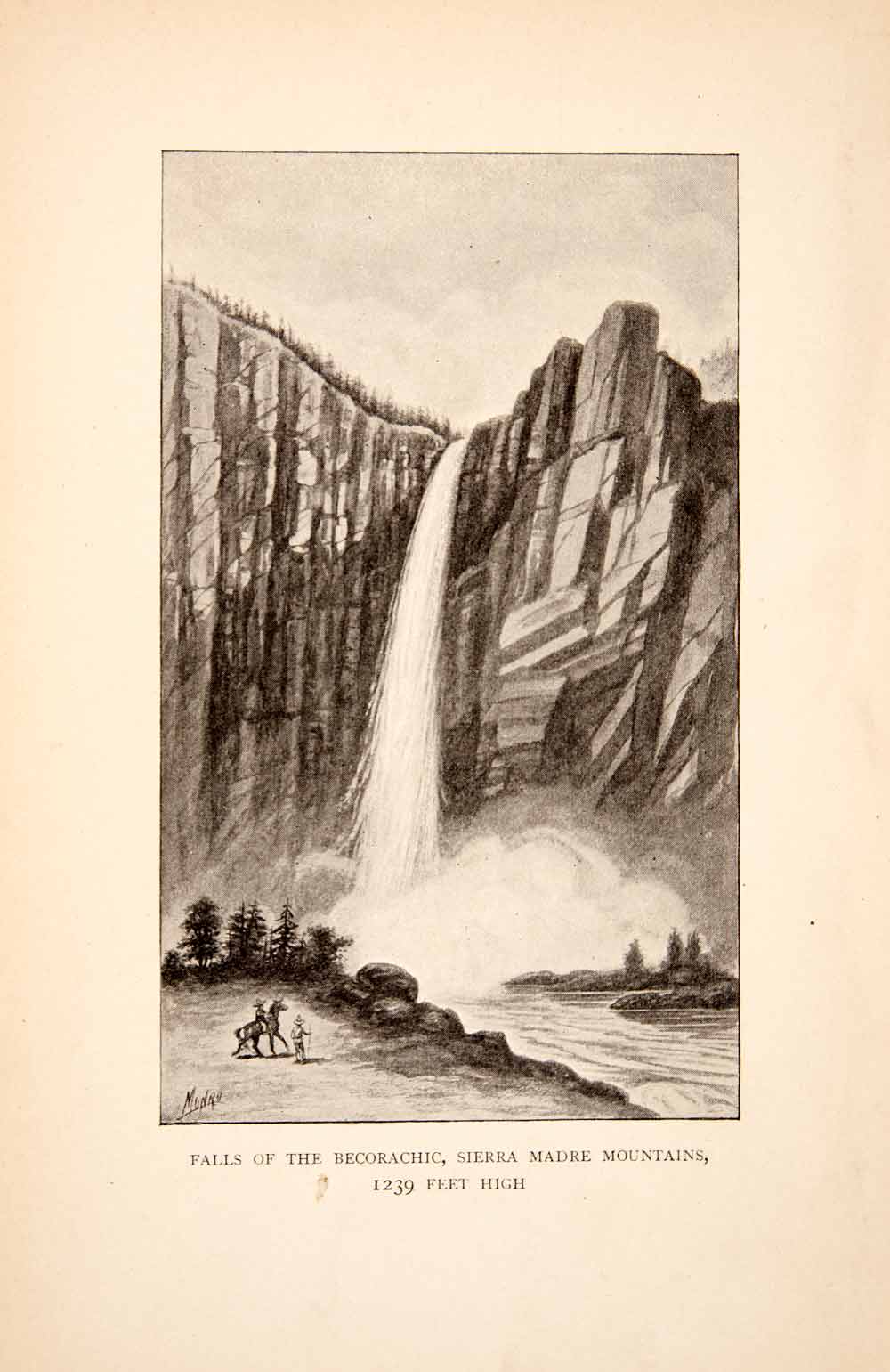 1895 Print Falls Becorachic Sierra Madre Mountains Landscape Waterfall XGFB5